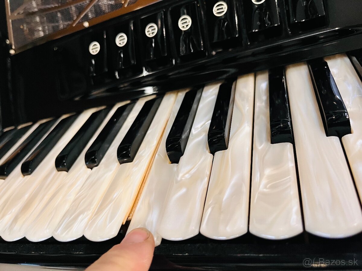 - perleťová, drevená klaviatúra, perleťové basy