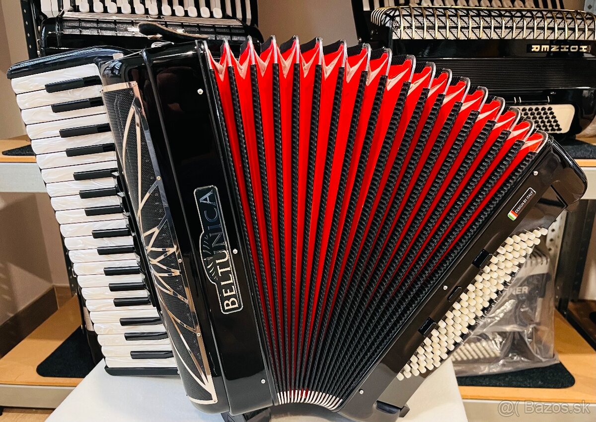 Nový akordeón Beltunica Proffesionall- III- 96 basový- krásny zvuk, silný bas, ľahučký!!!