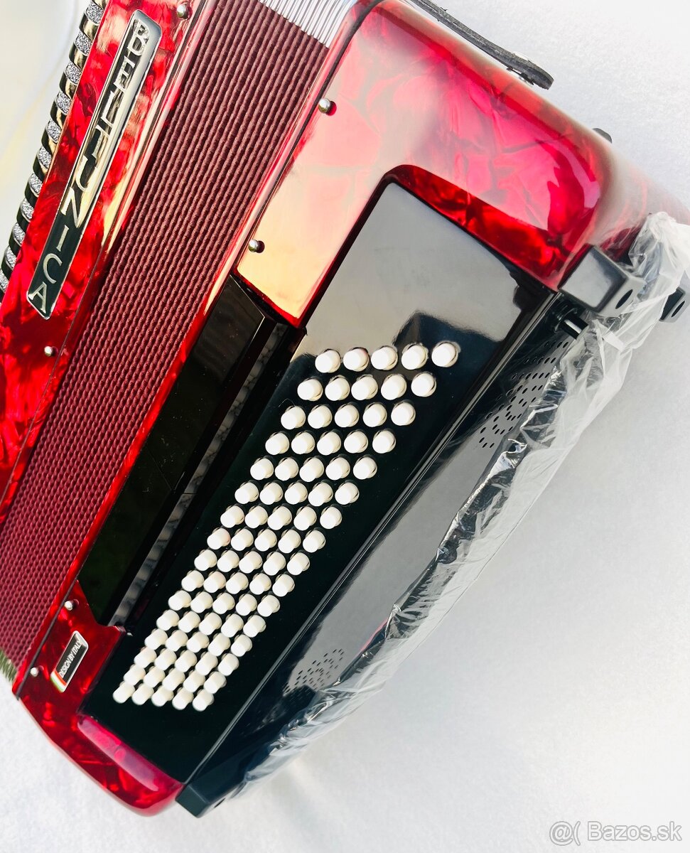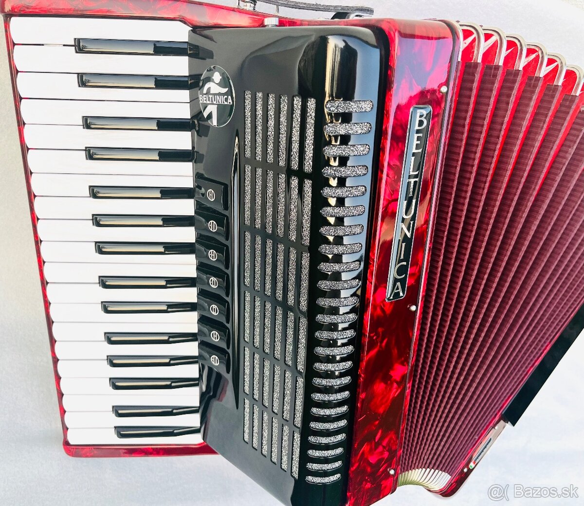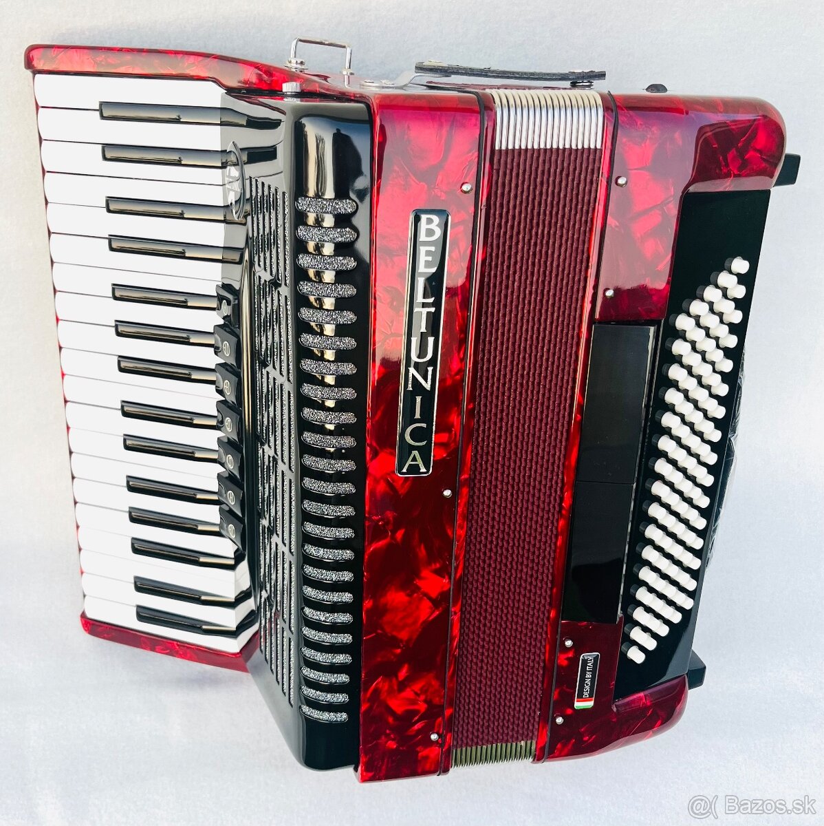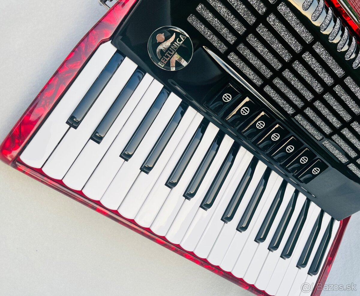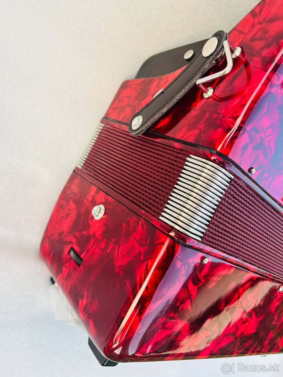 Nový akordeón BELTUNICA VIVALDI 80 basový- krásny zvuk, ľahučký!!! - krásna červená perleťová farba - nádherné červené Mechy - váha iba 8,4 kg - 34 klávesový - 7/2 registre - 80 basový - rozsah od malé "g”po "e3” - nízky ponor kláves - rozmery výška 40 cm, šírka 18 cm - Vhodný pre deti, taktiež aj dospelých, ktorí hľadajú ľahký a zvučný akordeón. - záruka 24 mesiacov - v cene nové remene+ chrbtový remeň - nový De Luxe vak - Možný osobný odber!!! - možnosť zaslať v bezpečnom balení územie celej SR+ 13,- Euro. Info: 0944 737 758