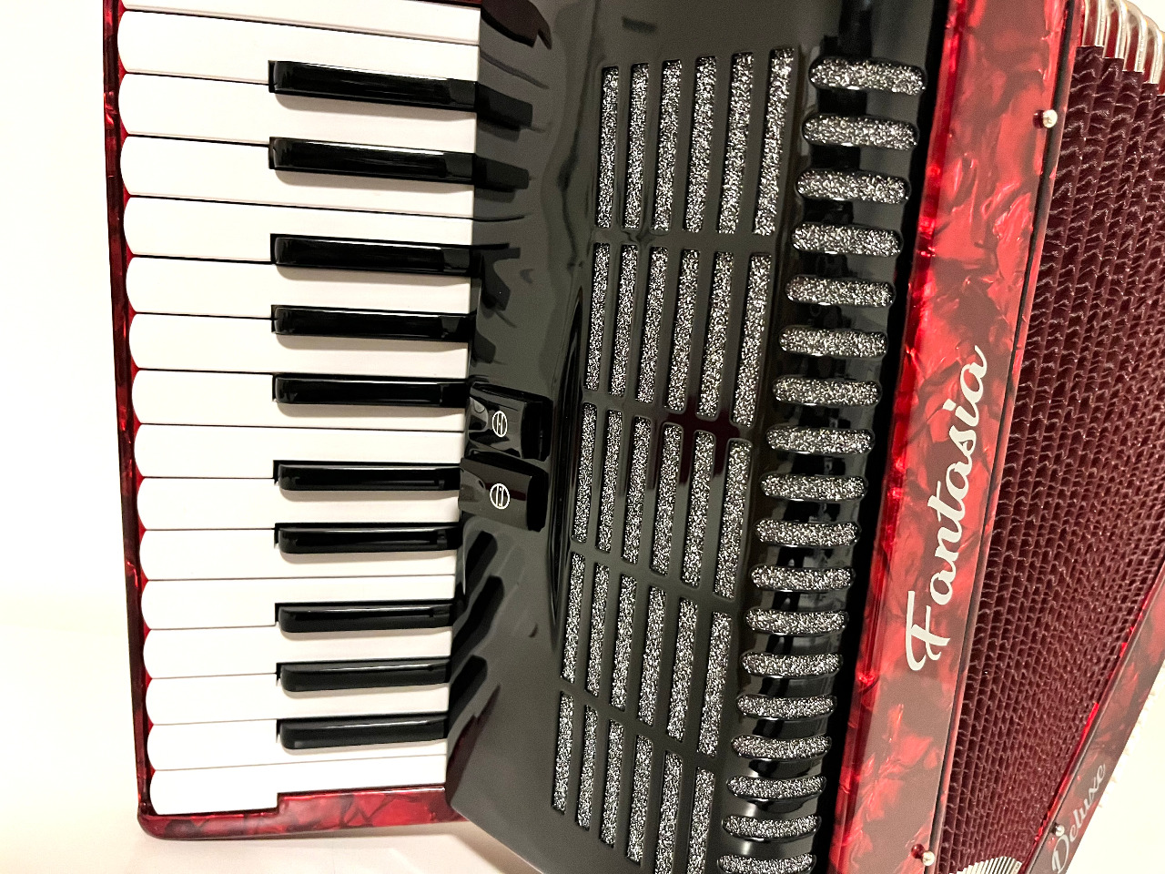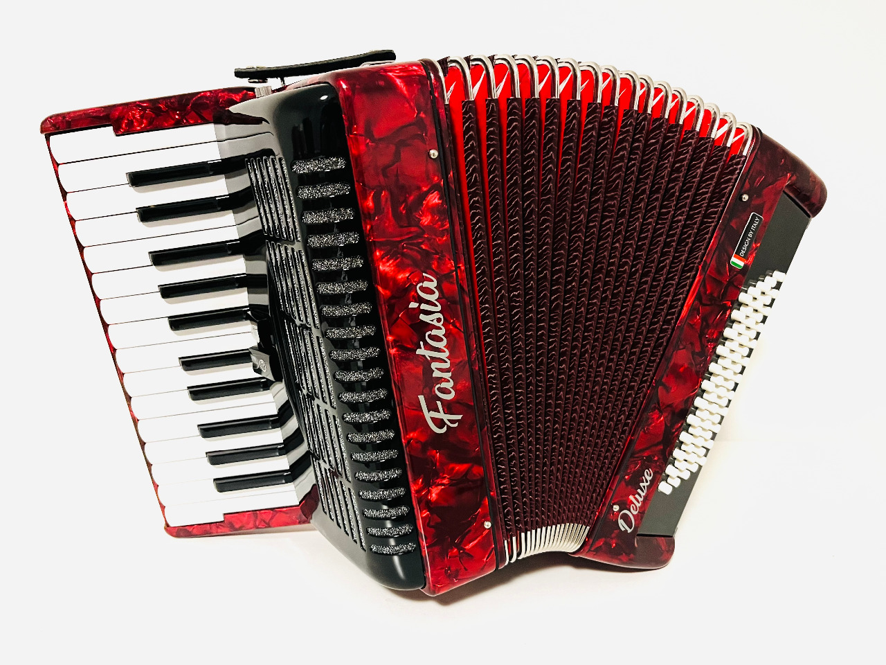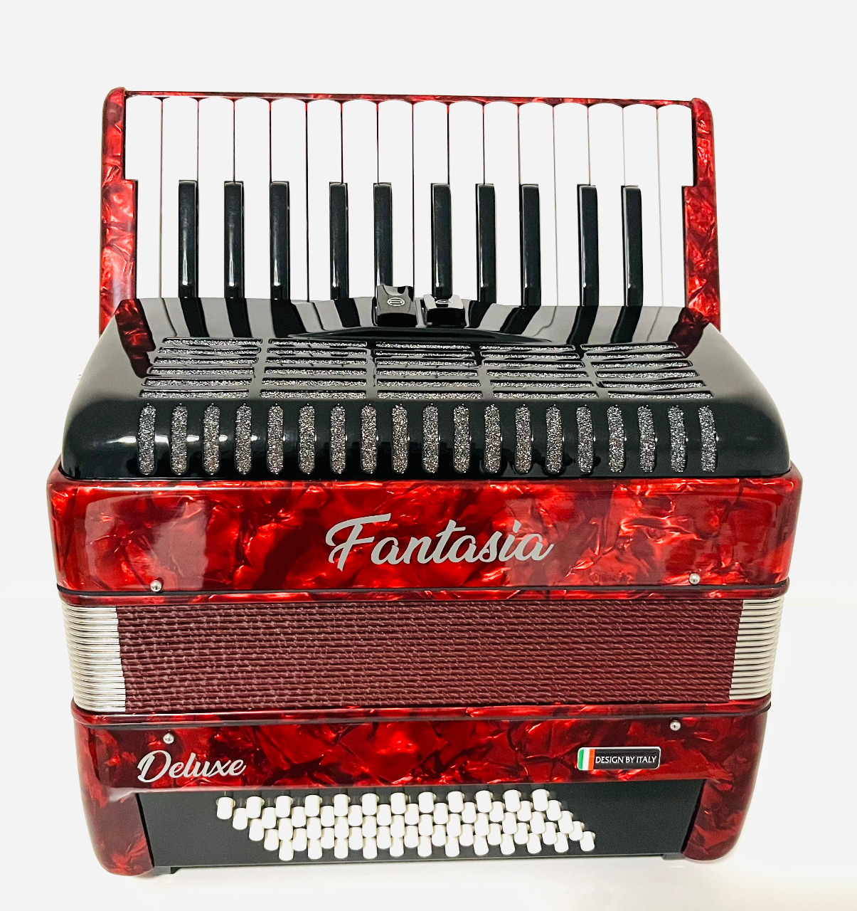 Nový akordeón FANTASIA- De Luxe 60 basový- nádherný zvuk, - ľahučky- váha iba 5,9 kg - 26 klávesový - rozsah od malé "h" po "c2" - nízky ponor kláves - rozmery výška 33 cm, šírka 17 cm - nádherné červené Mechy - Vhodný pre deti od 5 rokov, taktiež aj , dievčatá, mužov, ktorí hľadajú ľahký a zvučný akordeón. - záruka 24 mesiacov - v cene nové remene+ skracovaci chrbtový remeň - nový De Luxe vak - Možný osobný odber - možnosť zaslať v bezpečnom balení EXPRÉS KURIÉROM priamo k Vám domov- územie celej +15,-EURO- Euro. Info: 0944 737 758