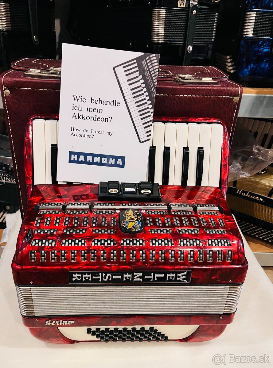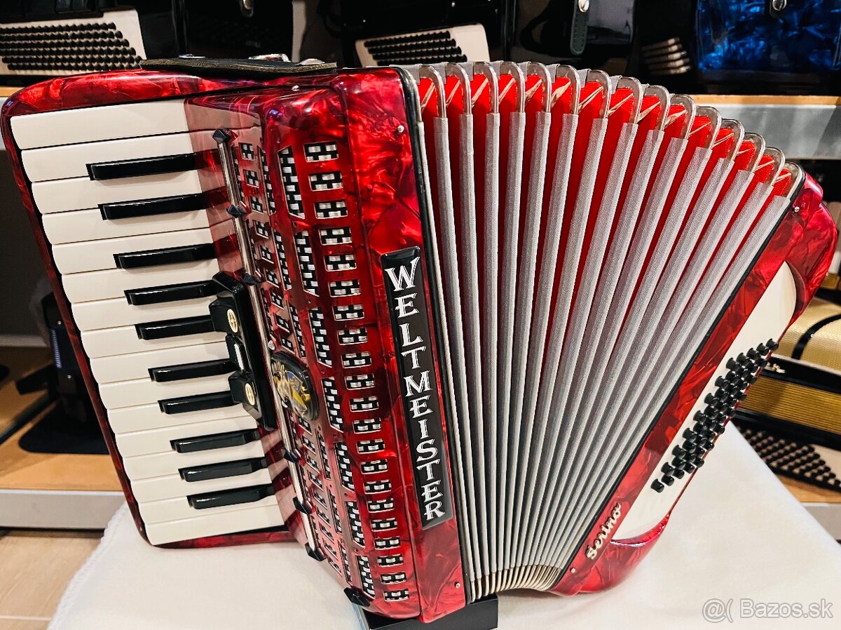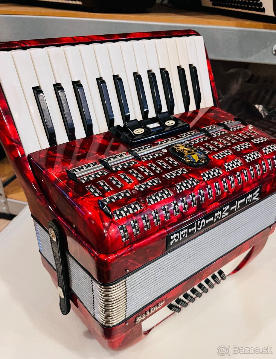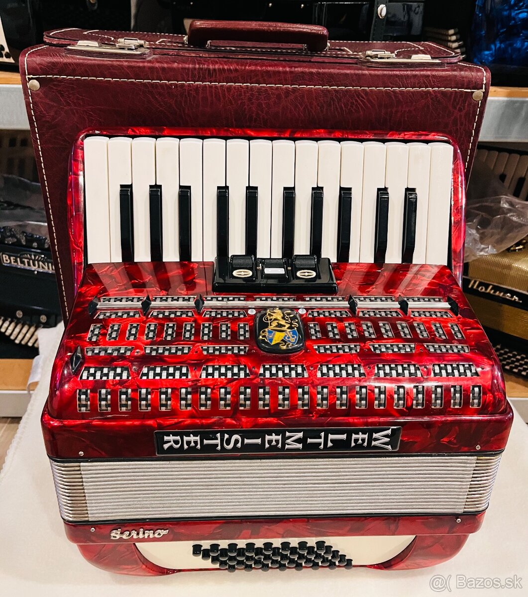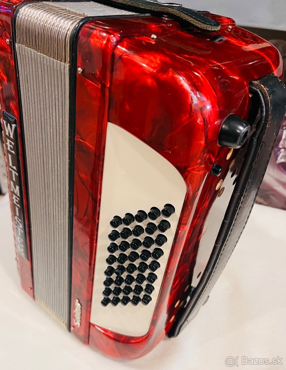 Predám detský akordeón Weltmeister Serino 40 basový Výborný zvuk, Made in Germany Vhodný pre deti od 4 do 11 rokov Rozmery 33 cm x 35cm x 17 Váha iba 5,3 kg Možný osobný odber. Pošlem aj na dobierku. Používaný akordeón, záruka 6 mesiacov Info tu: 0944 737 758
