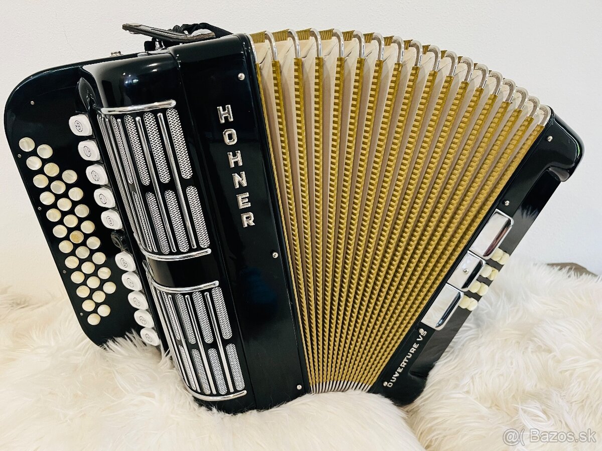 Predám nemeckú heligónku Hohner Overture V 5 hlasná, CF + poltóny, krásny zvuk, mussette ladenie, top stav, má stoják, v cene nové remene a tvrdý kufor. Made on Germany. Osobný odber, pošlem aj na dobierku+ 13,- euro.