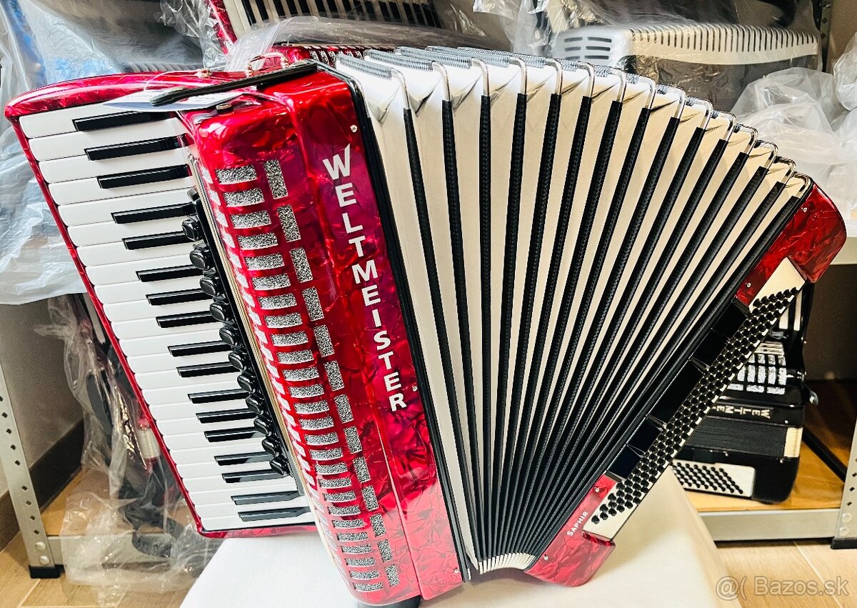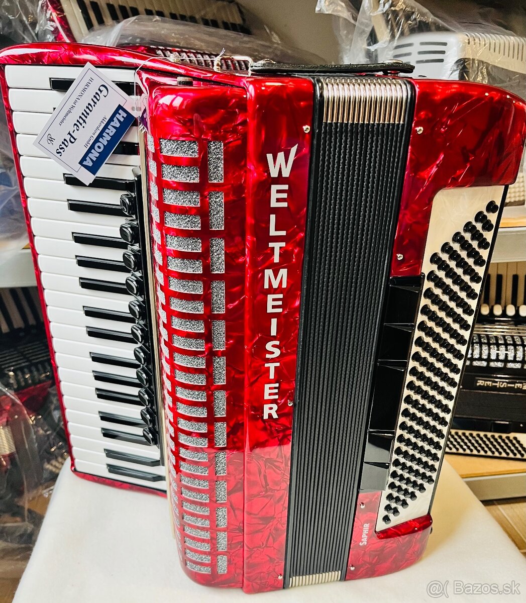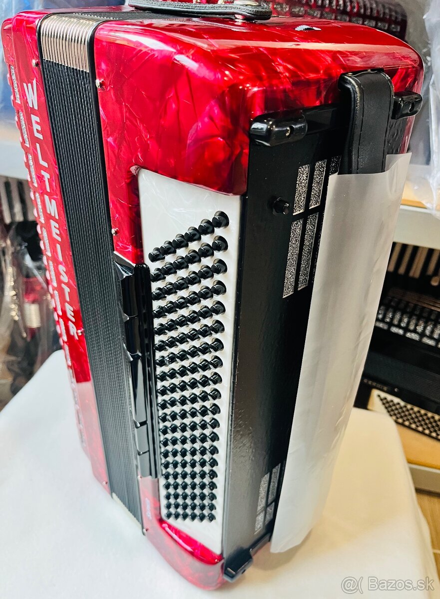 Predám NOVÝ akordeón WELTMEISTERS SAPHIR 120 BASOVÝ - 11/5 REGISTER - 41 klávesový - 120 basový - piccollo ladenie - talianske hlasy - vhodný pre náročných hráčov, pre učiteľôv ZUŠ, žiakov 2. stupňa - váha 10,6 kg V cene nové remene a nový tvrdý kufor. Záruka 2 roky Bežná katalógová cena nového 4530,- euro Info: 0944/737 758