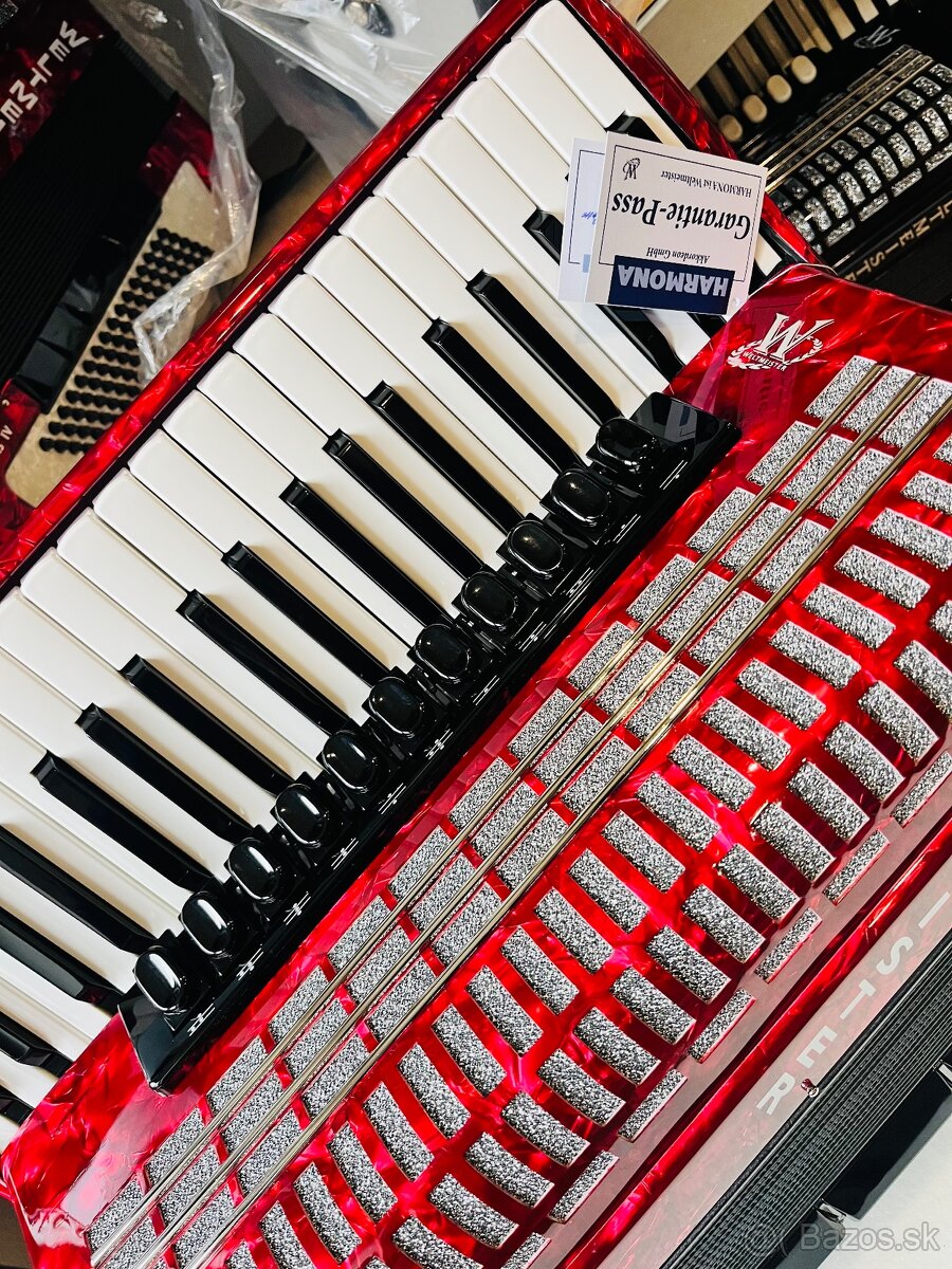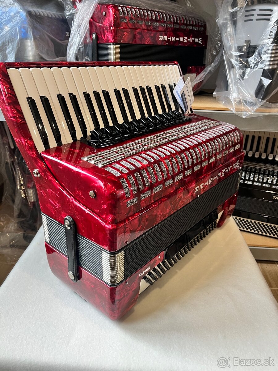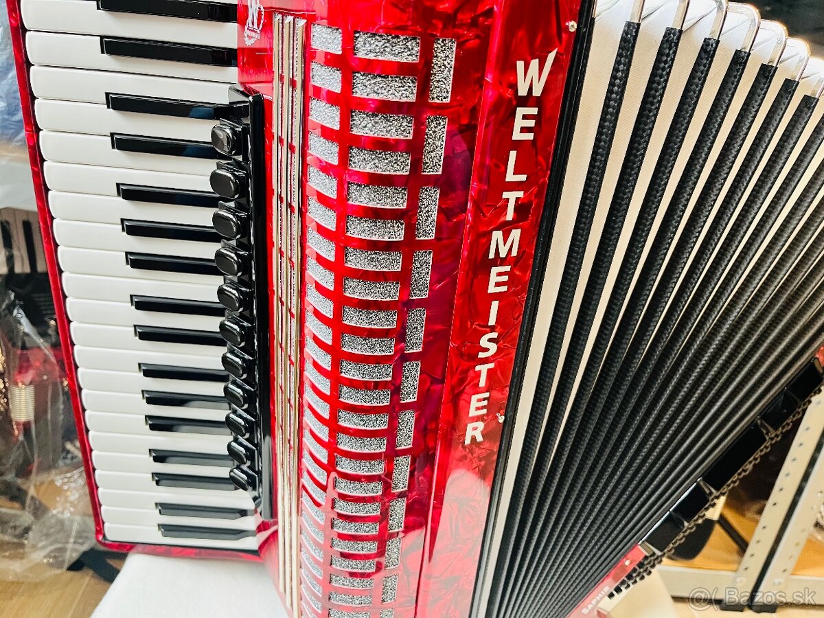 Predám NOVÝ akordeón WELTMEISTERS SAPHIR 120 BASOVÝ - 11/5 REGISTER - 41 klávesový - 120 basový - piccollo ladenie - talianske hlasy - vhodný pre náročných hráčov, pre učiteľôv ZUŠ, žiakov 2. stupňa - váha 10,6 kg V cene nové remene a nový tvrdý kufor. Záruka 2 roky Bežná katalógová cena nového 4530,- euro Info: 0944/737 758